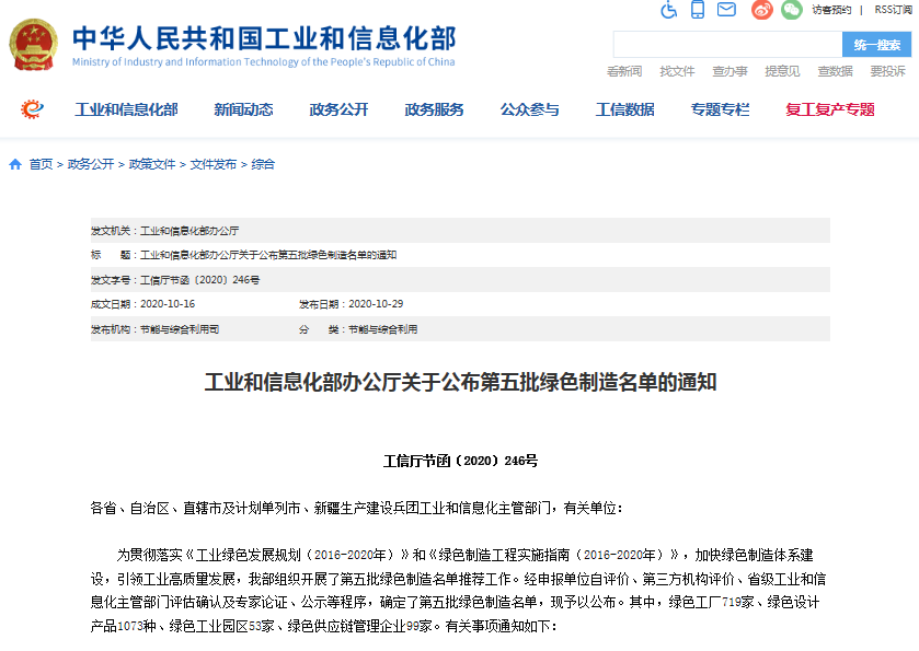 2020/11/6 | 来自:人力资源2020年10月29日,国家工业和信息化部公布了国家第五批绿色制造名单,欢迎来到公海710线路-欢迎来到公海堵船7108-555000jc线路检测中心-公海555000hh线路检测-欢迎来到公海手机版710-公海彩船6600cc-公海gh555000aa线路检测-欢迎来到公海赌710官网电子成功获评“国家级绿色工厂”。