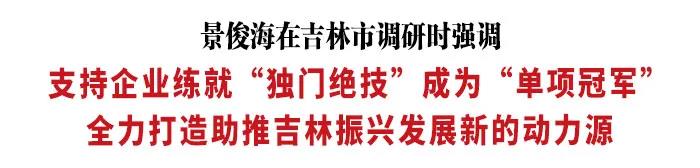 调研中,景俊海强调,当前,吉林振兴发展正处在加快产业转型升级、重塑高质量发展新优势的关键阶段,推动“专精特新”中小企业发展具有特殊重要意义。要注重实施“专精特新”中小企业培育“六大工程”,促进龙头企业与中小企业交叉合作、优势互补,着力构建重点领域、重点行业、重点区域的产业链配套协作体系,促进形成完整产业生态。要注重引导中小企业专注核心业务,开展技术创新、管理创新、商业模式创新,实现精细化生产、管理、服务。要注重政产学孵金协同创新,充分发挥政府引领作用,牵头推动中小企业与高等院校、科研院所深度合作,加快构建众创空间、科技企业孵化器加速器、产业园一体化的创新创业孵化链条,优化金融、技术转让、科技咨询、成果交易等增值服务,形成“专精特新”中小企业铺天盖地、万马奔腾的生动局面。各级党委、政府要落实好各项惠企利企助企政策,及时解决最现实、最迫切、最紧要的问题,为企业发展壮大扫清障碍、开辟道路。广大中小企业要抢抓机遇、趁势而上,聚焦“一主六双”高质量发展战略,围绕“六新产业”发展和“四新设施”建设,不断提高专业化生产、服务、协作配套能力,进一步开拓大市场、融入大平台,努力为吉林高质量发展提供有力支撑。