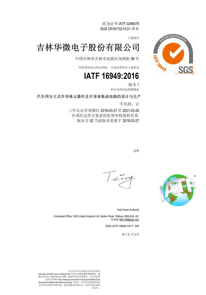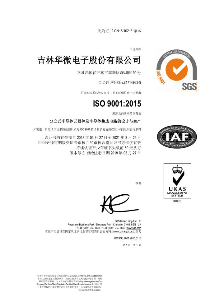 质量管理体系认证证书